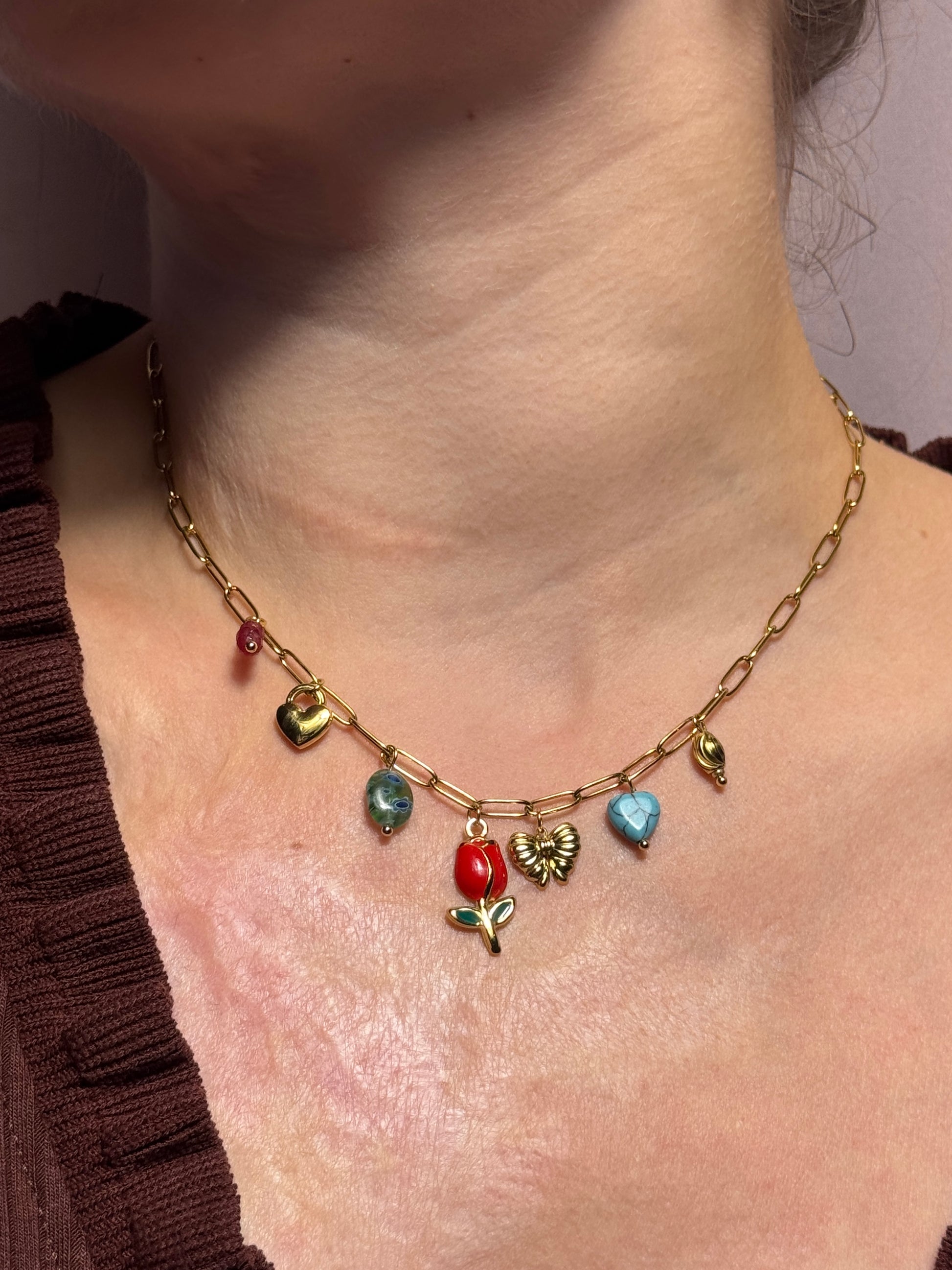Bohème et lumineux, le Collier Batignolles célèbre la fantaisie parisienne. Ses charms colorés – fleur, papillon, cœur – rappellent la légèreté d’une promenade ensoleillée dans un quartier poétique et créatif. Une pièce joyeuse et unique.