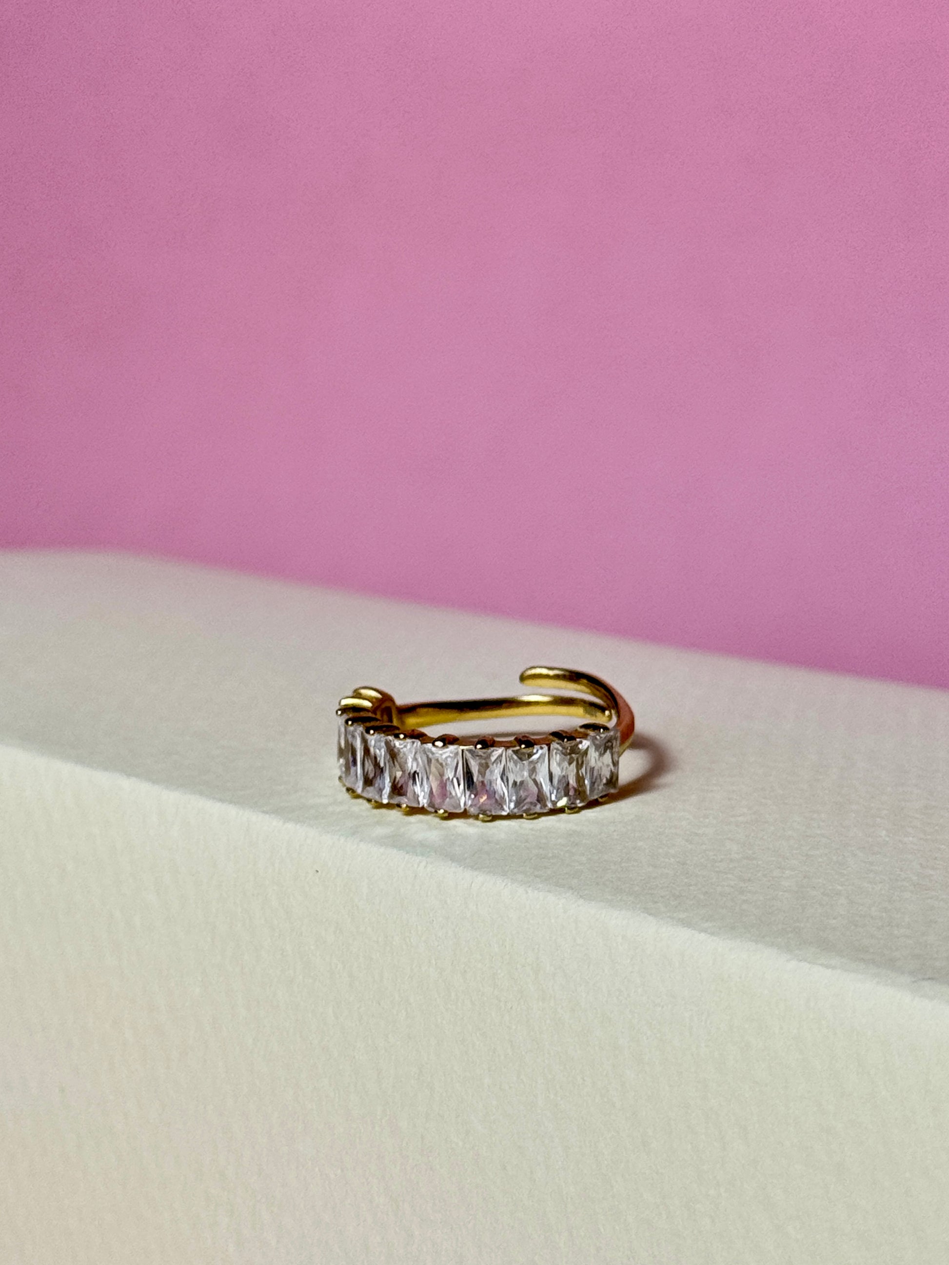 Chic et intemporelle, cette bague ertie de pierres géométriques rappelle les vitrines joaillières de la place Vendôme. Un classique parisien à porter tout les jours.