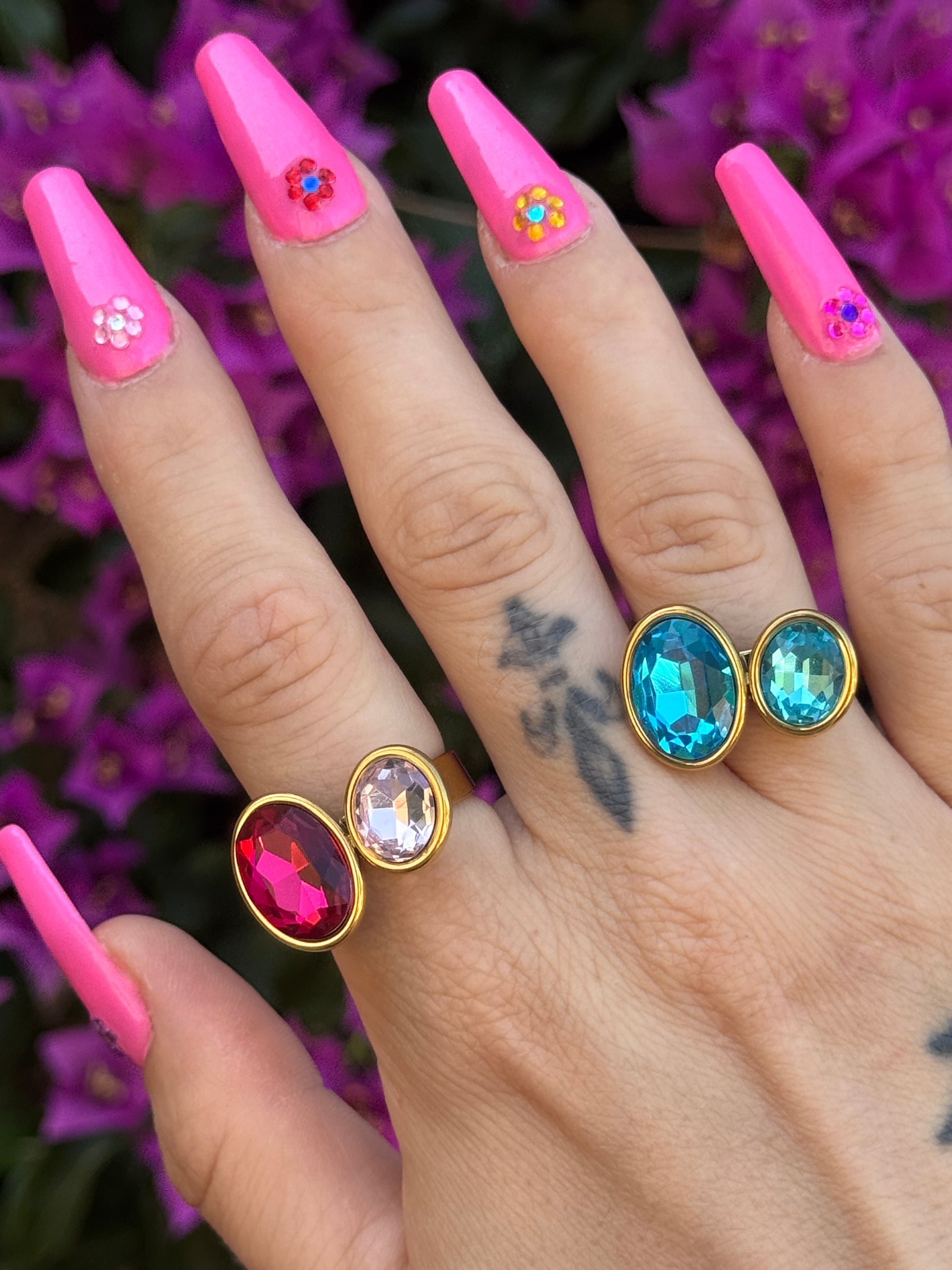 Un arc-en-ciel chic au bout des doigts. Tutti, c’est la bague qui met de bonne humeur, matchée avec ta manucure ou ton cocktail préféré. Parfaite pour une touche pop et solaire sur ta peau bronzée.