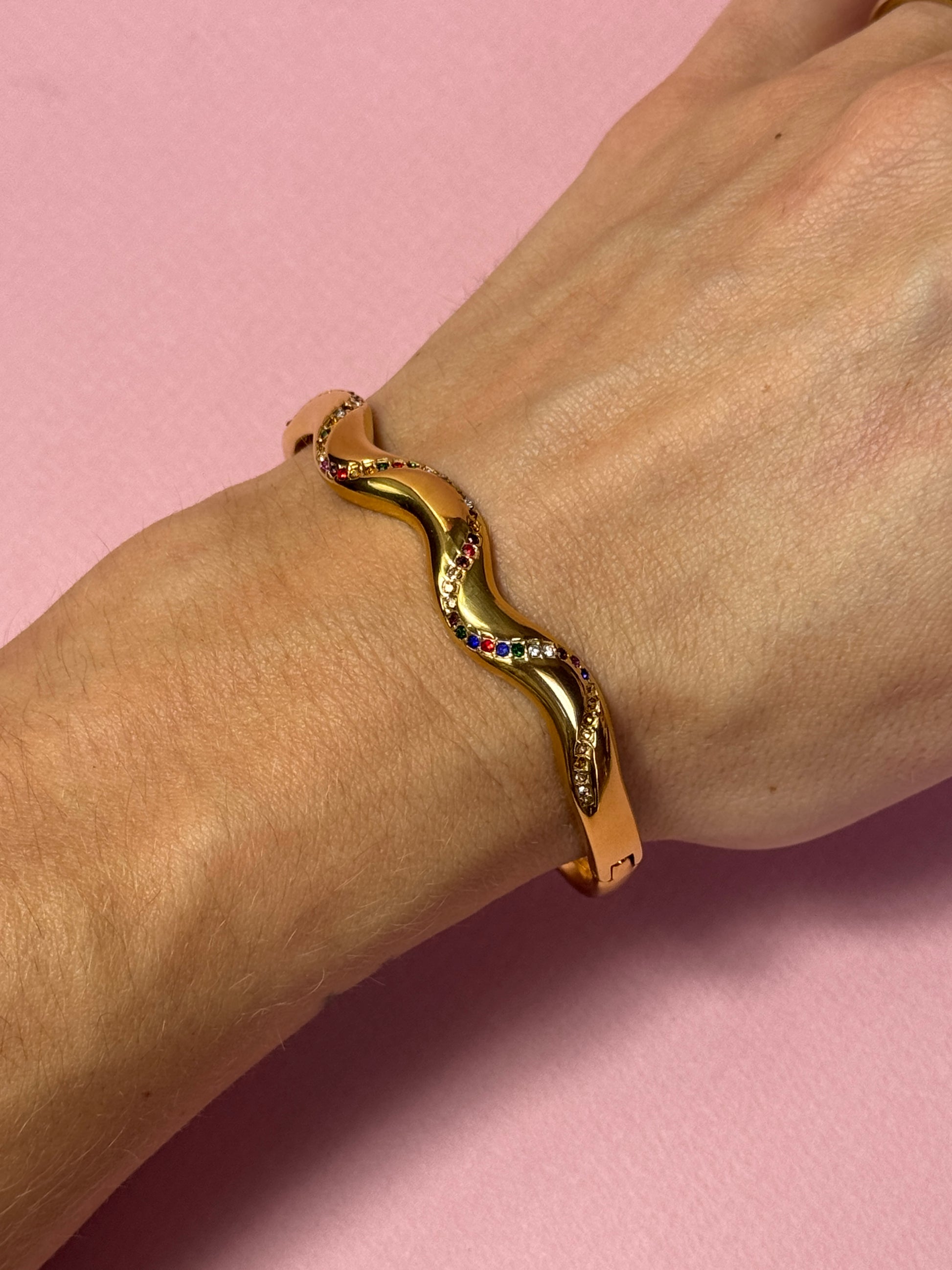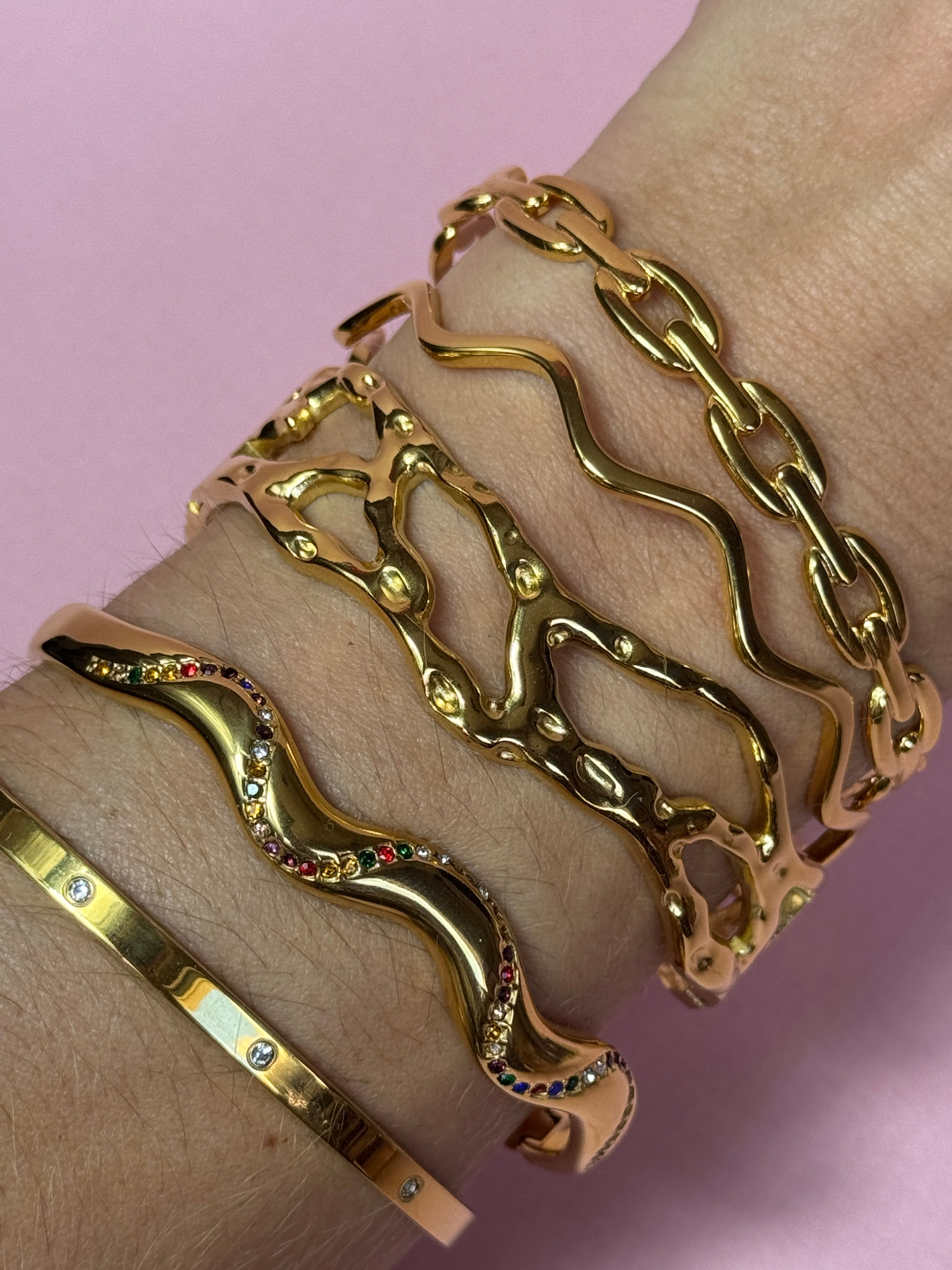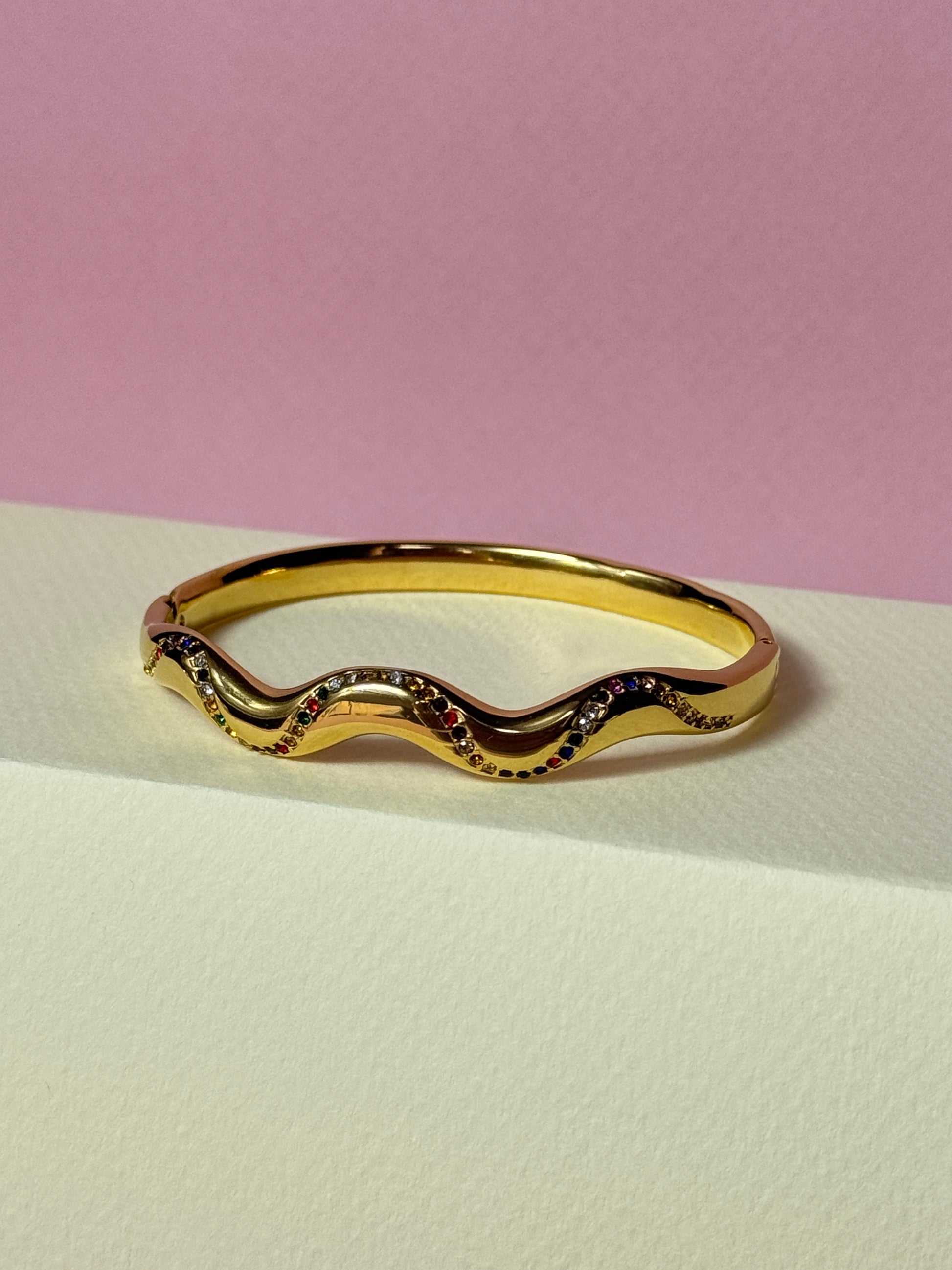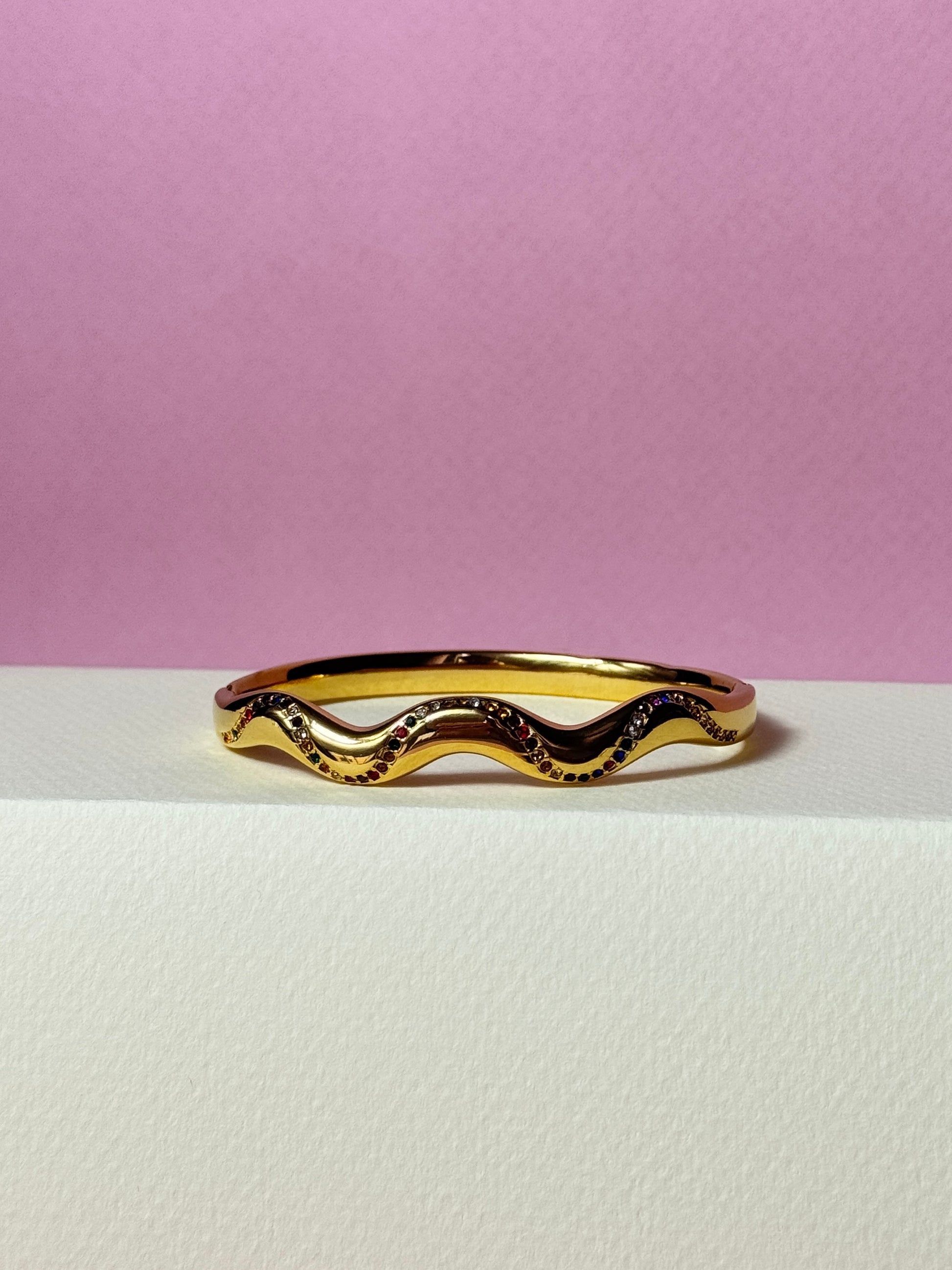 Une ondulation dorée qui rappelle les mouvements poétiques de la Seine. Fluide, féminin et éclatant.