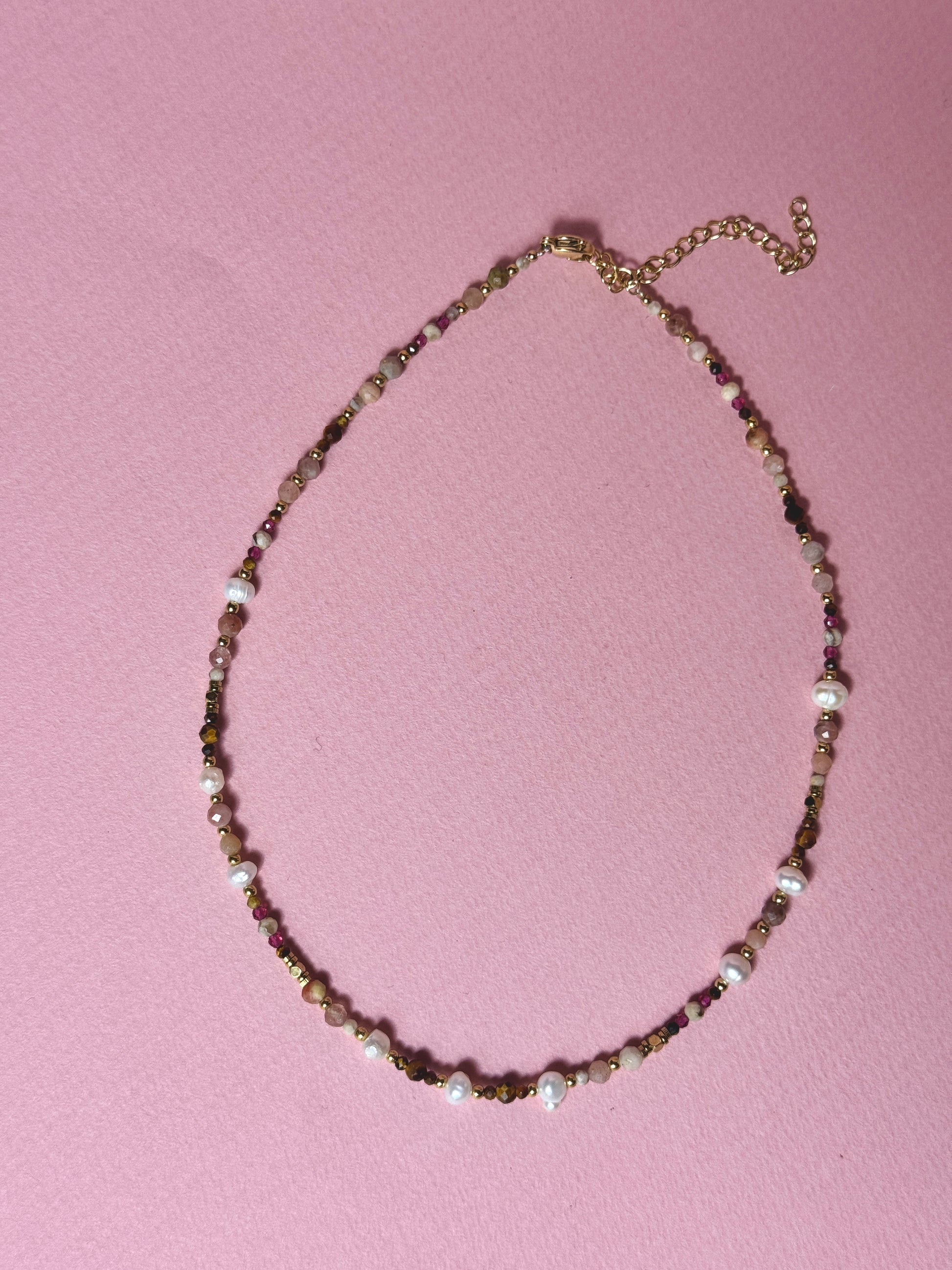 Le Collierest en pierres naturelles. Rhodonite et perles d'eau douce