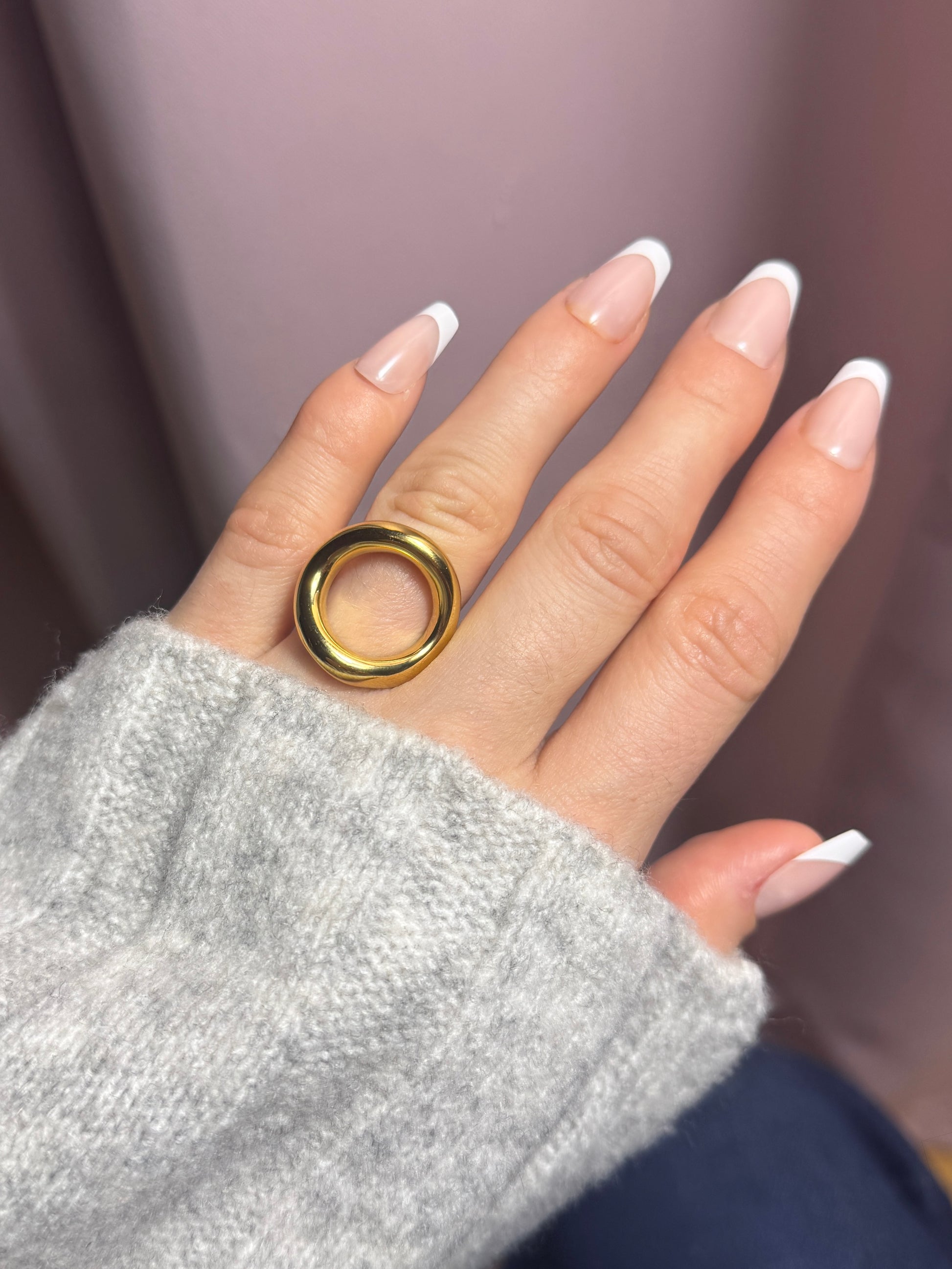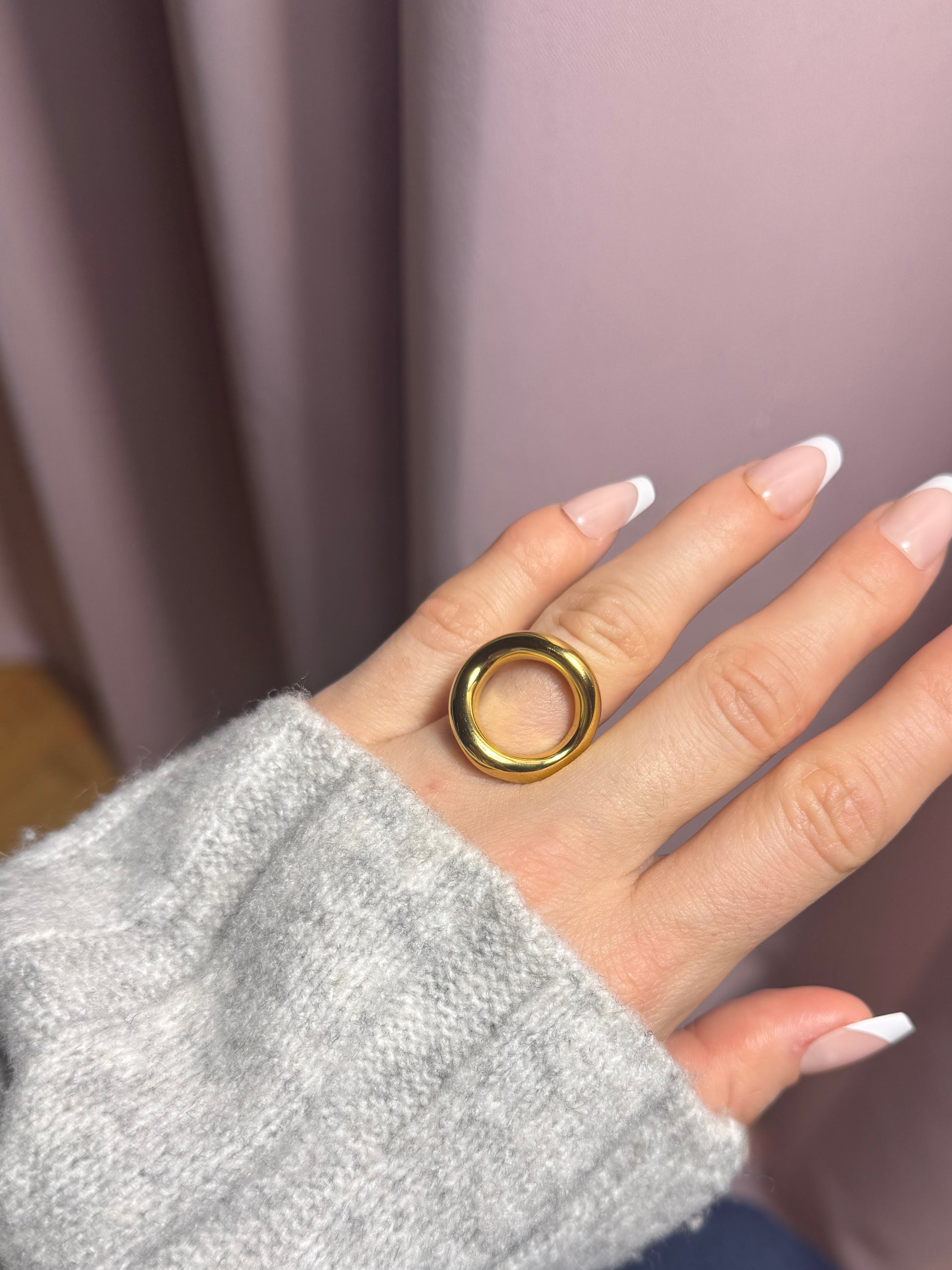 Un anneau fort, lisse, avec une vraie présence. Il habille la main en un seul geste. C’est le bijou parfait pour donner du caractère à une tenue simple. Basique puissant, indispensable.